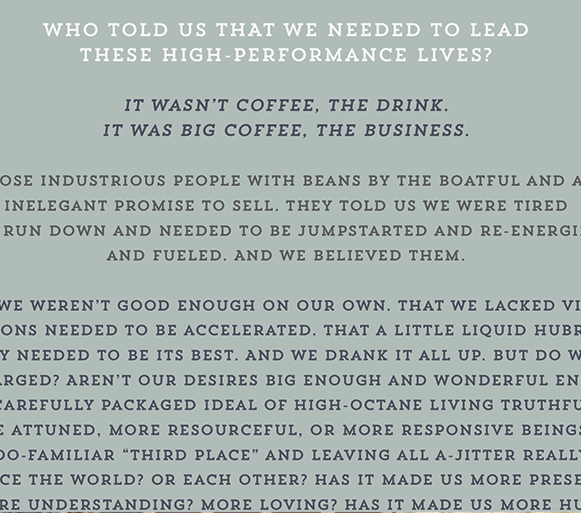 Equal parts vision and waking dream, Small Tea is the brainchild of Daniel Charles Joseph Benoudiz, who reached all the way across the country to assemble his team of graphic and interior designers, writers and strategists. The cultural mash-up of the Portland aesthetic and Florida’s, he reasoned, would be a breath of fresh air to this area. Come join us, breath some of this air, and see for yourself.